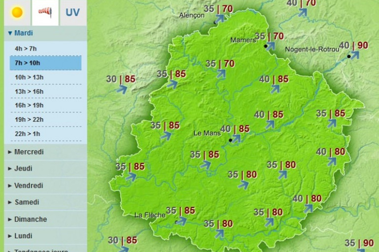 département ont été enregistrées à Luché-Pringé, dans le sud-Sarthe. Le vent y à