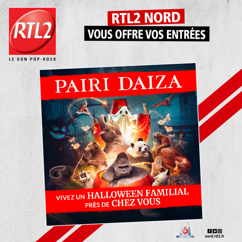 Ecoutez RTL2 Nord entre 12h et 16h. Dès que vous repérez le Signal RTL2, soyez les premiers à composer le 03 59 82 21 31, et tentez de gagner votre journée en famille à Pairi Daiza, à l'occasion de Halloween !
