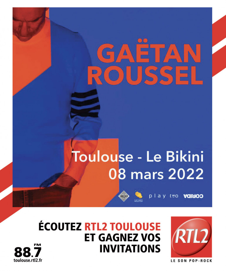 Cette semaine écoutez Loic Schulz entre 12h et 16h sur RTL2 Toulouse, dès que vous repérez le SIGNAL RTL2 appelez le 05 81 84 32 31 et GAGNEZ vos invitations pour applaudir Gaëtan Roussel le 8 Mars au Bikini!