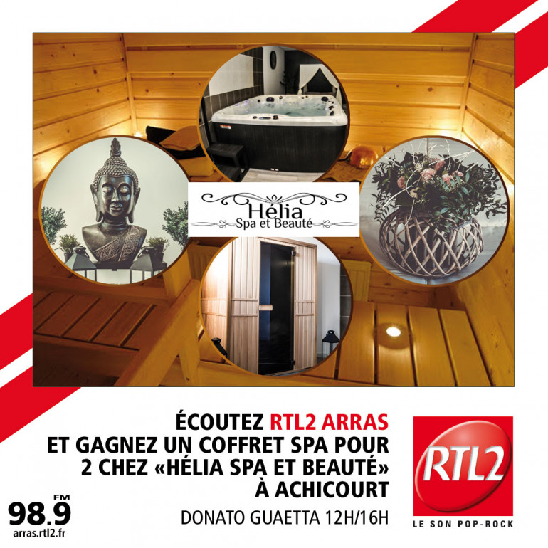 Jouez avec Donato Guaetta entre midi et 16h, dès que vous entendez le signal RTL2, appelez le 03 59 85 32 01 et gagnez un coffret Spa de 2 heures chez Hélia Spa et Beauté à Achicourt.