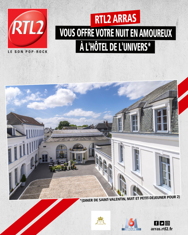 Jouez avec Donato Guaetta entre midi et 16h, dès que vous entendez le signal RTL2, appelez le 03 59 85 32 01 et gagnez une nuit pour 2 personnes à l'hôtel de l'Univers avec repas de Saint-Valentin et petits déjeuners.