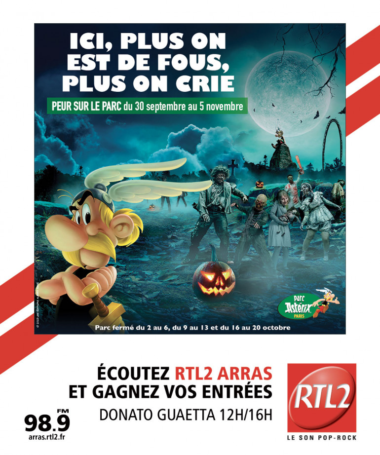Jouez avec Donato Guaetta entre midi et 16h, dès que vous entendez le signal RTL2, appelez le 03 59 85 32 01 et gagnez vos entrées pour fêter Halloween au Parc Astérix.
