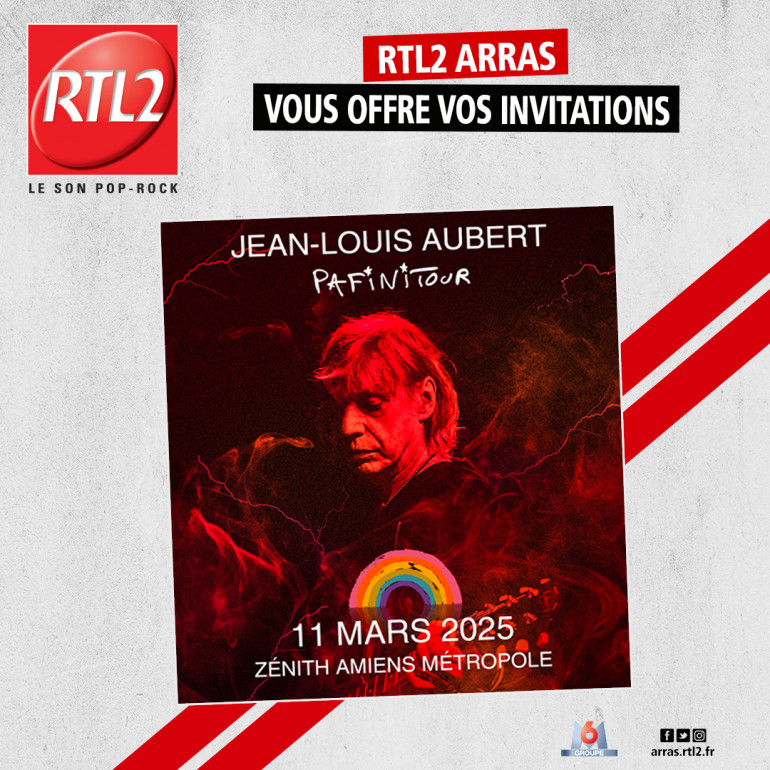 Jouez avec Donato Guaetta entre midi et 16h, dès que vous entendez le signal RTL2, appelez le 03 59 85 32 01 et gagnez vos invitations pour le concert de Jean-Louis Aubert le mardi 11 mars 2025 au Zénith d'Amiens avec RTL2 Arras.