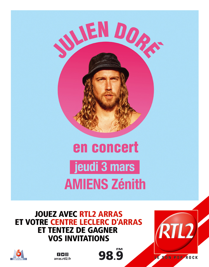 Deuxième étape : pour tenter de gagner vos invitations pour le concert de Julien Doré à Amiens, envoyez vos coordonnées (nom, prénom, ville et numéro de téléphone) par mail à arras@rtl2.fr avec en objet "JD".