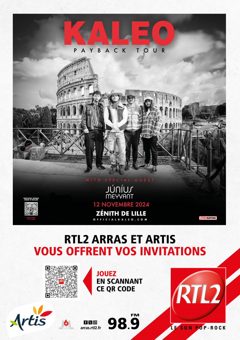 Deuxième étape : pour tenter de gagner vos invitations* pour le concert de Kaleo le 12 novembre au Zénith de Lille, cliquez sur le bouton ci-dessous