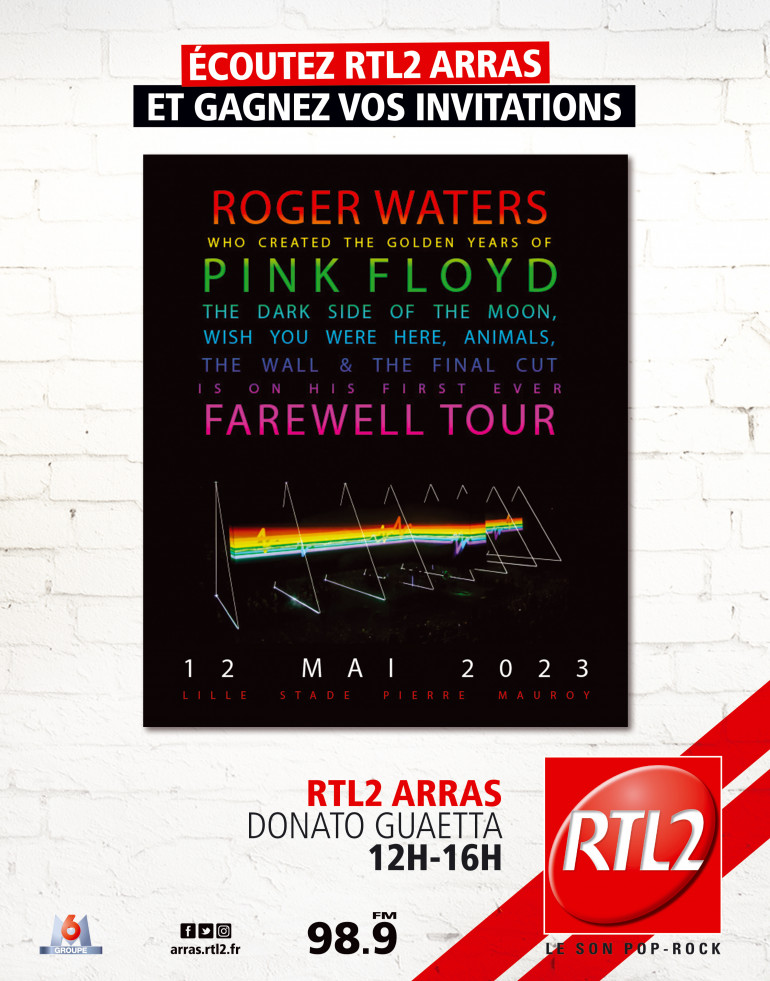 Jouez avec Donato Guaetta entre midi et 16h, dès que vous entendez le signal RTL2, appelez le 03 59 85 32 01 et gagnez vos invitations pour le concert RTL2 de Roger Waters le 12 mai au Stade Pierre Mauroy.