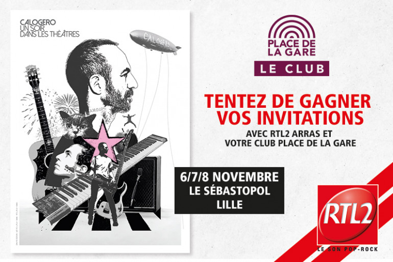 Pour tenter de gagner vos invitations* pour les concerts de Calogero les 6, 7 et 8 novembre 2025 au théâtre Sébastopol à Lille avec RTL2, rendez-vous sur le site leclub.placedelagare.fr