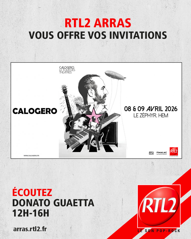Jouez avec Donato Guaetta entre midi et 16h, dès que vous entendez le signal RTL2, appelez le 03 59 85 32 01 et gagnez vos invitations pour les concerts de Calogero les mercredi 08 et jeudi 09 avril au Zéphyr à Hem.
