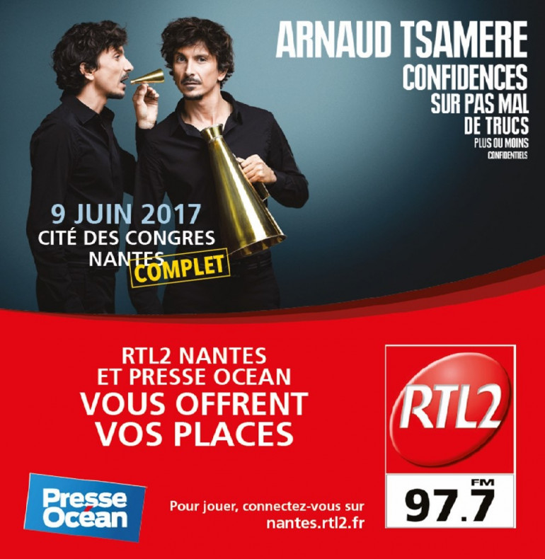 Cette semaine, RTL2 Nantes et Presse Océan vous offrent des invitations pour le spectacle d'Arnaud Tsamere le 9 juin à la Cité des Congrès de Nantes.