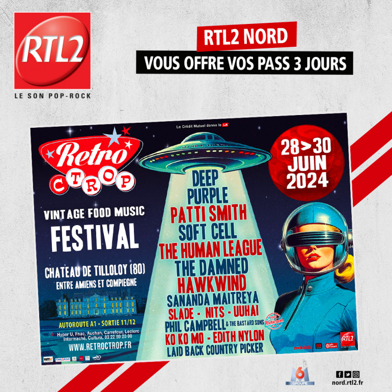 Cette semaine, jouez ici et précisez vos coordonnées complètes, pour tenter de gagner vos Pass 3 jours pour le festival Rétro C trop 2024 les 28, 29 et 30 juin au château de Tilloloy.