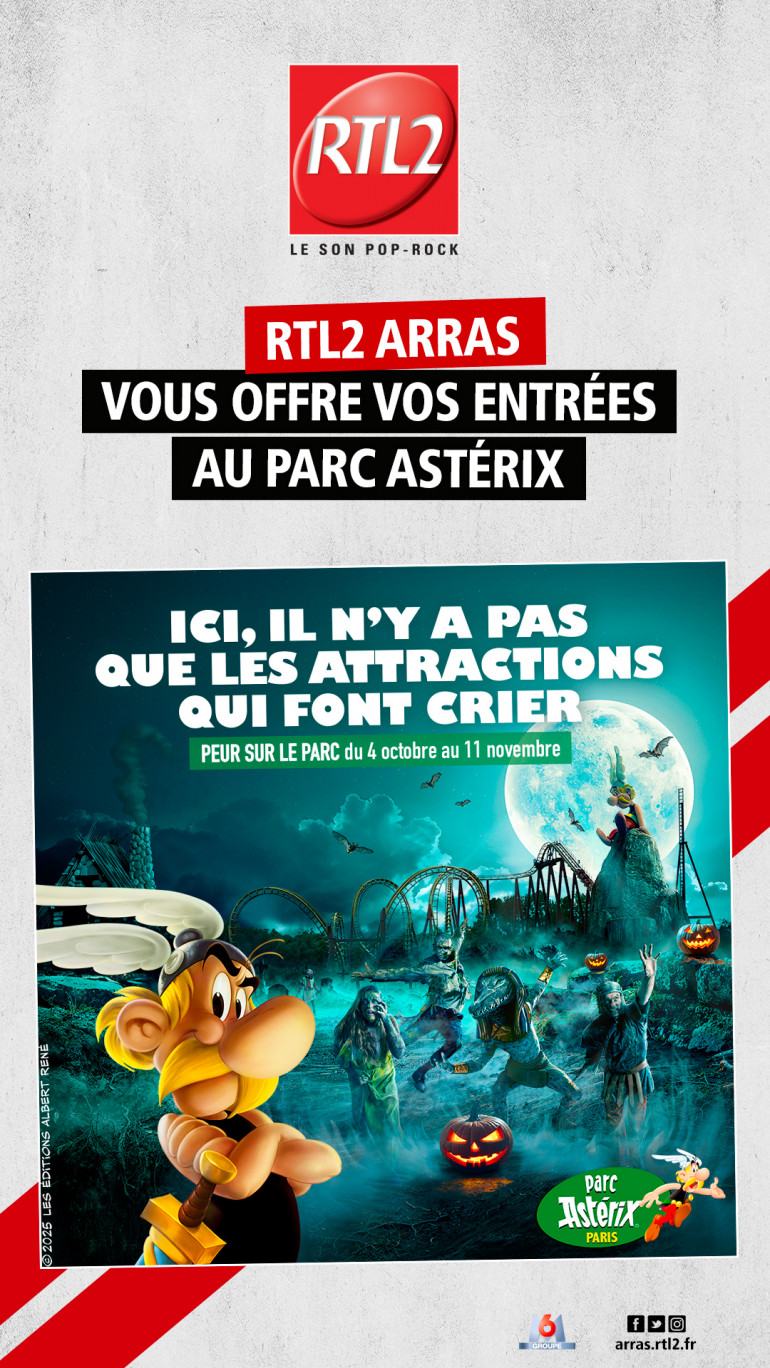 Jouez avec Donato Guaetta entre midi et 16h, dès que vous entendez le signal RTL2, appelez le 03 59 85 32 01 et gagnez vos pass famille pour fêter Halloween au Parc Astérix.