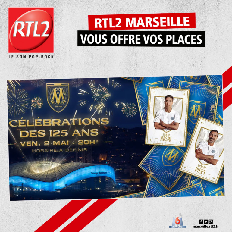 Envoyez dès maintenant vos coordonnées (nom, prénom, ville, téléphone, mail) + "OM 125" sur marseille@rtl2.fr, bonne chance.