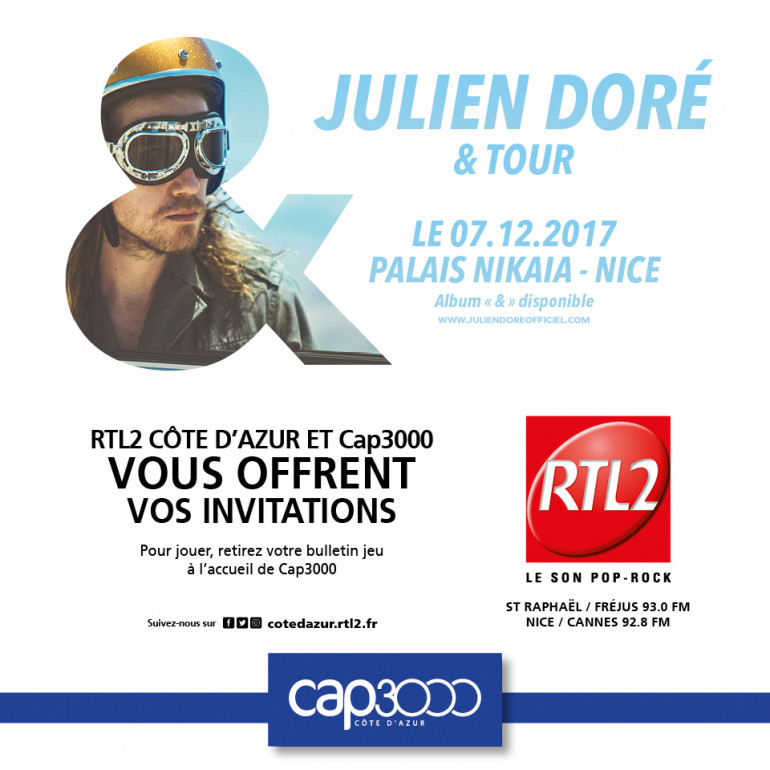 RTL2 Côte d'Azur et Cap 3000 vous offrent vos places pour le concert de Julien Doré