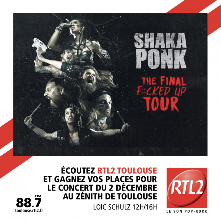 Cette semaine écoutez Loic Schulz entre 12h et 16h sur RTL2 Toulouse, dès que vous repérez le SIGNAL RTL2 appelez le 05 81 84 32 31 et gagnez vos entrées pour le concert de SHAKA PONK the final fucked up tour !