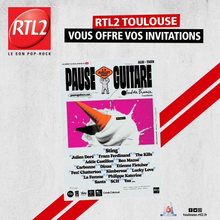 Cette semaine écoutez RTL2 Toulouse 88.7 entre 12h et 16h, dès que vous repérez le SIGNAL RTL2 appelez le 05 81 84 32 31 et GAGNEZ votre soirée au choix pour deux au Festival Pause Guitare !
