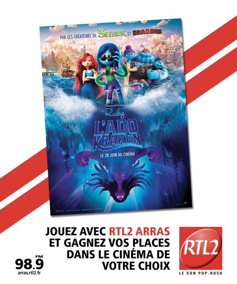 Avec RTL2 Arras, accompagnez #RubyLadoKraken dans son aventure épique contre les sirènes. Découvrez le nouveau film des studios DreamWorks, créateurs de Shrek et Dragons, le 28 juin au cinéma avec RTL2 !