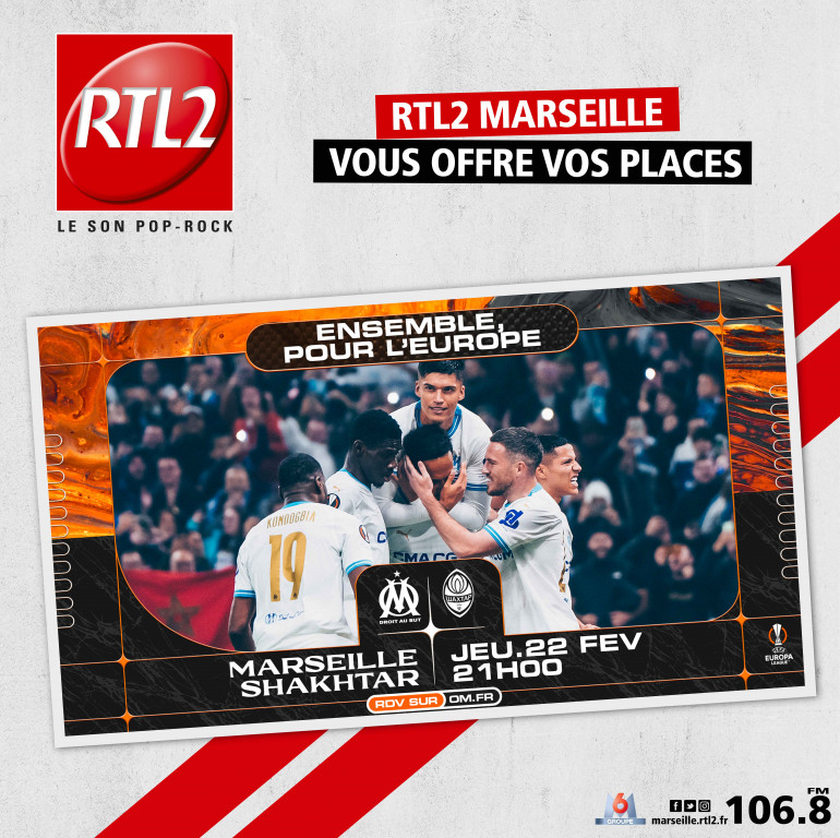 Pour jouer et tenter de gagner vos places pour le match OM/SHAKTHAR le 22 février à 21h au stade Vélodrome, envoyez "OM/SHAKTHAR" ainsi que vos coordonnées à marseille@rtl2.fr