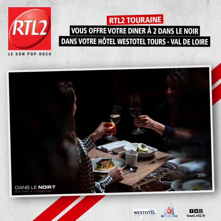 RTL2 Touraine, et le nouveau restaurant Dans le Noir ? à l’hôtel Westotel Tours - Val de Loire vous invitent à vivre une expérience inédite. Dégustez un menu 100% surprise dans l'obscurité totale.