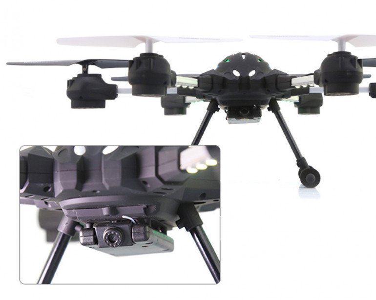 est conçu avec des bras en alliage d’aluminium et possède une caméra 2MP. Son