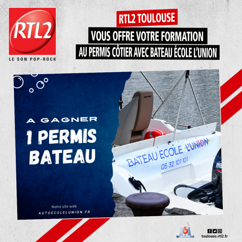 Cette semaine, écoutez Sébastien sur RTL2 Toulouse, 88.7, de 12h à 16h, repérez le Signal RTL2 05.81.84.32 et gagnez votre Formation au Permis Bateau* avec l'Auto-Moto-Bateau école de l'Union