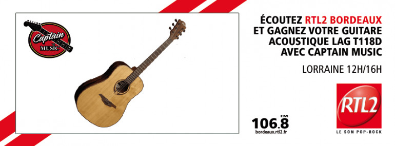 A l'occasion de la rentrée, RTL2 Bordeaux vous offre toute cette semaine votre guitare acoustique LAG T118D avec votre magasin Captain Music, en plein cœur de Bordeaux !