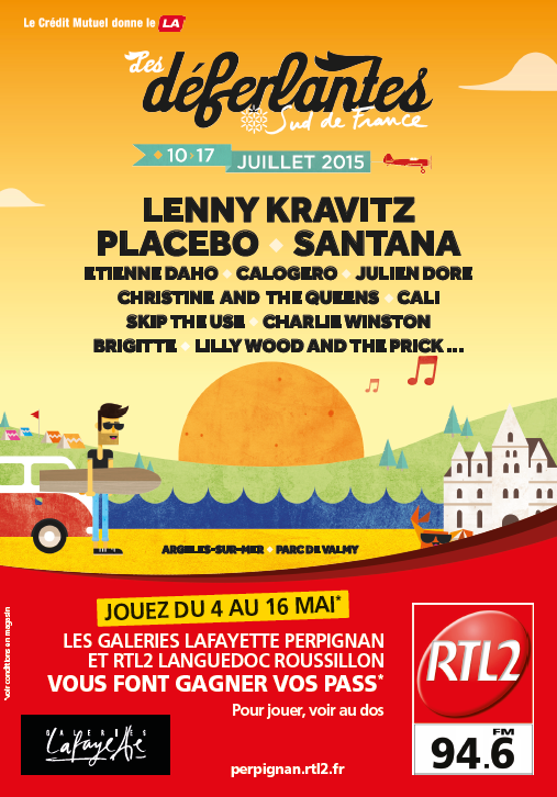 RTL2 Languedoc Roussillon et les Galeries Lafayette vous offrent vos PASS pour le festival des Déferlantes Sud de France 2015 ! Rendez vous du 4 au 16 Mai dans votre magasin de Perpignan pour tenter votre chance ..Tirage au sort le Samedi 16 Mai à 18h !