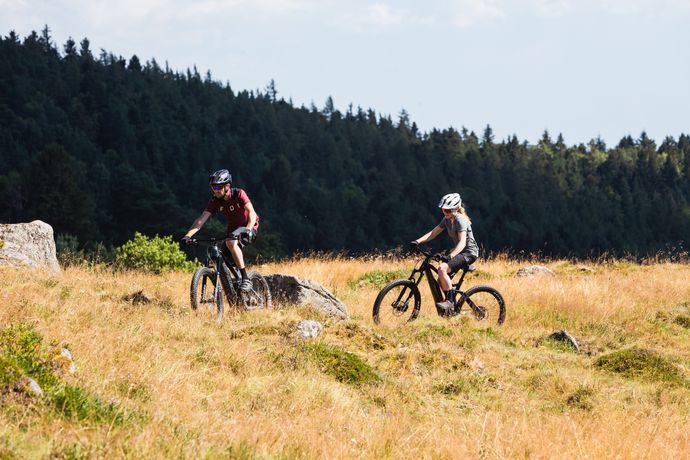 Après une montée au cours de laquelle vous pourrez admirer la canopée de nos forêts, vous débarquerez à 1180m d’altitude. En haut du télésiège, 3 balades avec retour station et 1 balade avec retour par télésiège vous seront proposées : lac de montagne, tourbière, sommets...