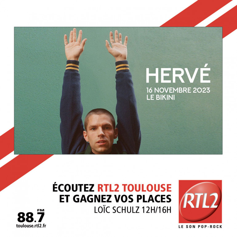 Pour remporter vos PASS pour applaudir Herve envoyez nous un mail à toulouse@rtl2.fr avec en objet HERVE suivi de vos noms, prénoms, adresse et numéro de téléphone. Bonne chance avec RTL2 Toulouse le Son Pop Rock !