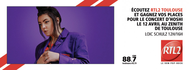 RTL2 Toulouse et Bleu Citron vous offrent les plus beaux concerts partout en Haute Garonne! Cette semaine écoutez Loic Schulz entre 12H et 16H sur RTL2 Toulouse, dès que vous repérez le SIGNAL RTL2 appelez le 05 81 84 32 31 et GAGNEZ vos entrées pour applaudir Hoshi le Mardi 12 Avril à 20h au Zénith de Toulouse!!