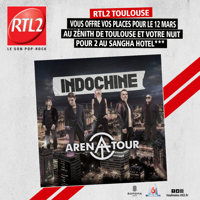 Indochine en tournée partout en France et de passage au Zénith de Toulouse ! Les dates sont complètes mais cette semaine en repérant le Signal RTL2 entre 12h et 16h vous gagnez vos places pour le concert du mercredi 12 mars ! Et pour vivre une expérience unique votre nuit au Saghan Hotel*** situé à 2 pas du Zénith (nuit pour 2 + petit déjeuné)