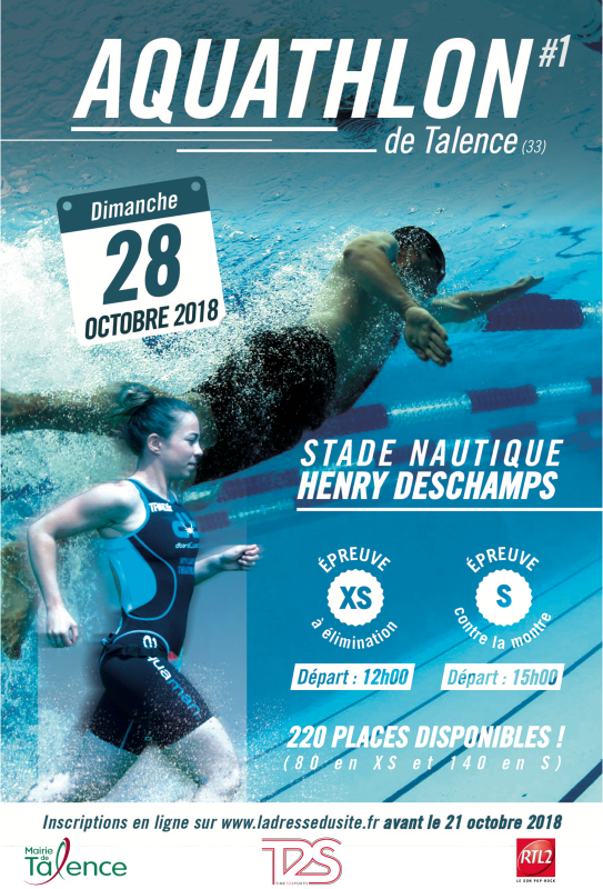 Le 28 octobre prochain, venez découvrir l'aquathlon, le sport qui allie la natation et la course à pied. Le parcours de Talence jouera entre le stade nautique Henry Deschamps et le bois de Thouars, itinéraire idéal pour la compétition !