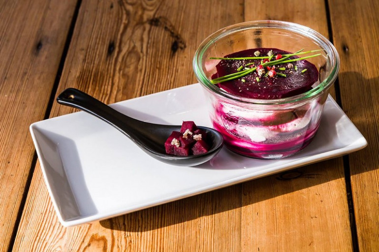 Le mille-feuille de betterave au chèvre de Bocaux Locaux