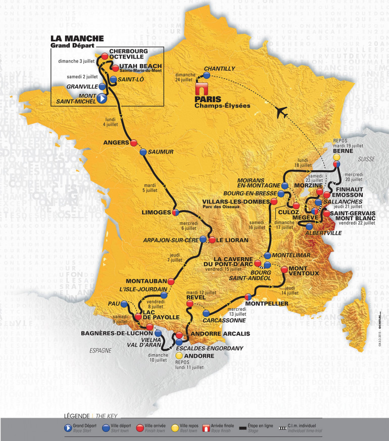 Cyclisme... Le parcours du prochain Tour de France a été dévoilé hier. Les coureurs s’élanceront le 2 juillet 2016 du Mont St-Michel. Après 2 étapes dans la Manche, ils prendront ensuite la direction d’Angers et repartiront le lendemain de Saumur vers Limoges, via le Poitou, en empruntant peut-être quelques routes d’Indre-et-Loire. On ne connaît pas encore le tracé dans le détail.
