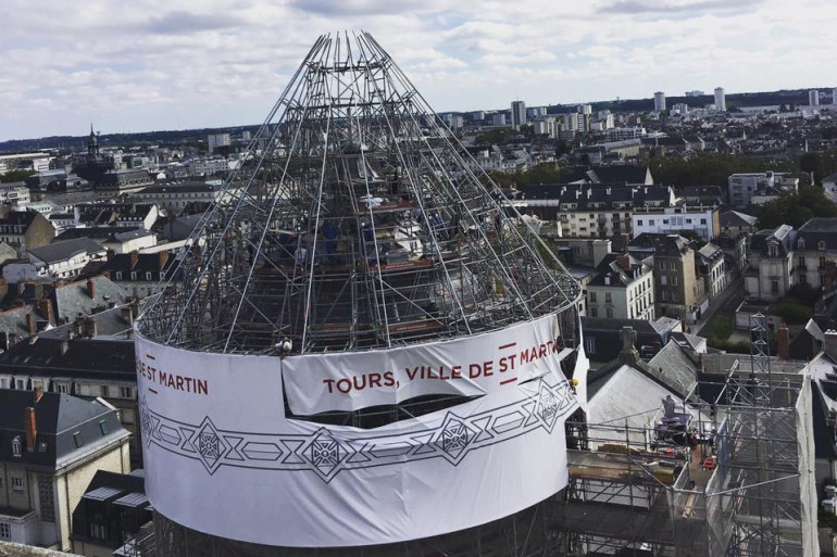 A un peu plus d’un mois des festivités célébrant le 1700ème anniversaire de la naissance de Saint-Martin, les travaux de rénovation de la basilique de Tours se poursuivent… Les 2 bâches qui recouvraient le haut de l’édifice ont été enlevées hier. Les échafaudages resteront jusqu’au retour de la statue le 15 octobre.