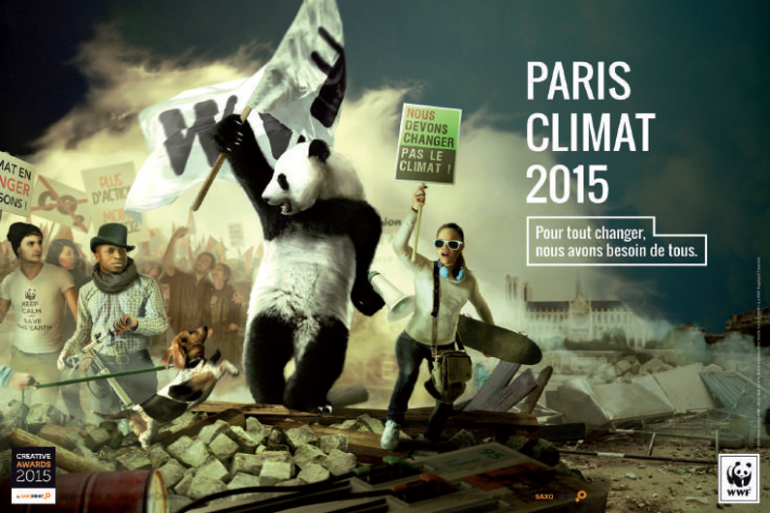 Mobiliser les jeunes autour du péril climatique… C’est l’objet de la nouvelle campagne lancée par le WWF en vue de la COP 21, la Conférence des Nations-Unies sur les changements climatiques organisée en fin d'année à Paris (du 30 novembre au 11 décembre). Baptisée "Pandarévolution", l’affiche a été réalisée par 2 jeunes créateurs formés à L’Ecole Brassart à Tours (Pierre Gaudoin et Céline Lentz), qui se sont inspirés d’un tableau d’Eugène Delacroix. L’ONG veut inciter les 18/25 ans à s’engager dans le combat contre le réchauffement climatique et à changer leurs habitudes de consommation.