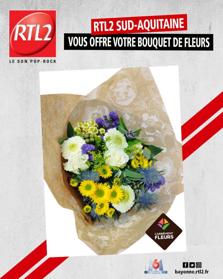 Pour tenter de remporter votre bouquet,envoyez un mail à : bayonne@rtl2.fr en précisant en objet : "FLEURS" et en indiquant vos noms, prénoms , adresse et numéro de