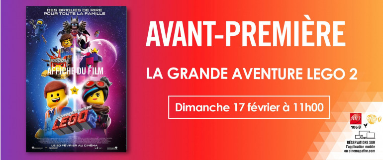 RTL2 Marseille vous invite à l'avant-première du film d'animation "La Grande Aventure Lego 2", ce dimanche 17 février à 11h au Pathé Plan de Campagne.