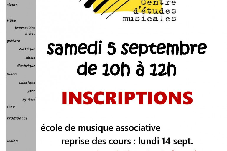 A vos guitares, à vos baguettes, à vos, à vos accordéons, à vos pianos etc... le Centre d'Etudes Musicales de Niort vous accueille pour une nouvelle saison pleine de nouveautés!