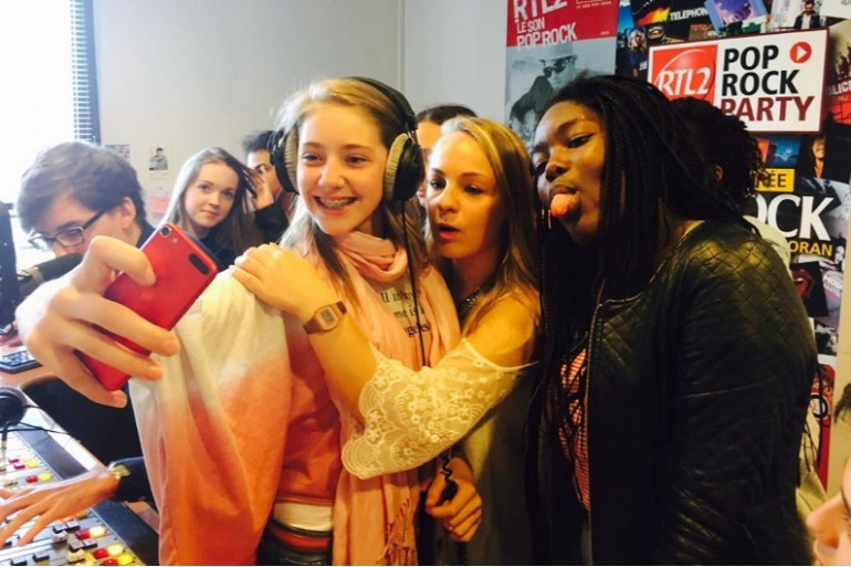 Séance de selfie dans les studios d'RTL2 Nord.