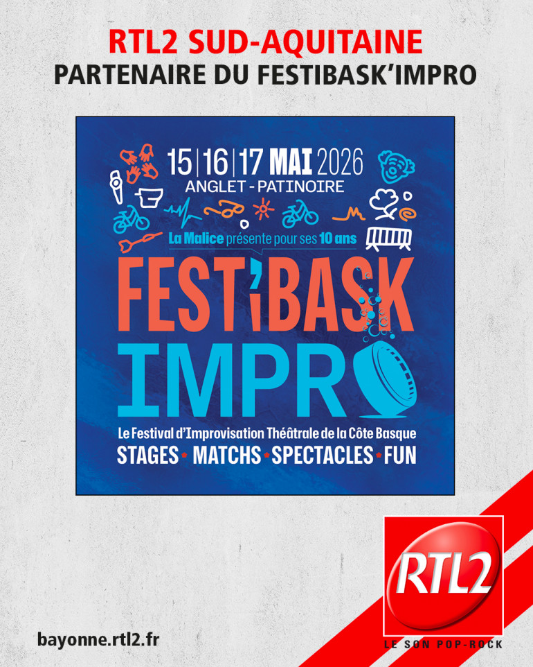 RTL2 Sud-Aquitaine vous invite au Festibask’Impro : un festival d’improvisation unique qui transforme la patinoire d’Anglet en véritable scène de spectacle vivante.