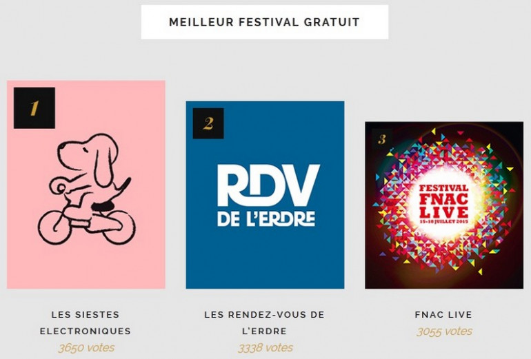 Enfin Les Rendez-vous de l'Erdre participent également à la fête en étant élu deuxième meilleur festival gratuit de France. Une très belle moisson de médailles donc pour ce cru 2015 des Festival Awards.