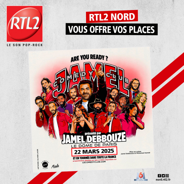 RTL2 Nord vous offre vos places pour le Jamel Comedy Club au Zénith de Lille, le samedi 22 février pour un show qui promet de faire travailler vos zygomatiques !