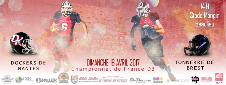 Les Dockers sont de retour à Mangin Beaulieu pour le championnat de D3. Pour ce nouveau match à domicile de la saison 2016/2017, les Dockers reçoivent le Tonnerre de Brest. Rendez-vous dimanche 16 avril à 14 heures.