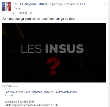 La bonne nouvelle est tombée il y a moins de deux heures sur le Facebook du groupe "Les Insus". Les ex-Téléphone ont annoncé une série de dates pour leur tournée 2016. Jean-Louis Aubert, Louis Bertignac et Richard Kolinka passeront par Antarès le 5 mais prochain. Les places seront mises en vente vendredi 4 décembre à 10H !