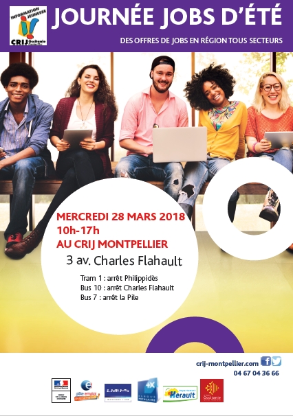 Régional Information Jeunesse organise un forum JOBS. Cette année, la journée des jobs d’été aura lieu MERCREDI 28 mars de 10h à 17h, 3 avenue Charles Flahault à Montpellier.50 employeurs, plus