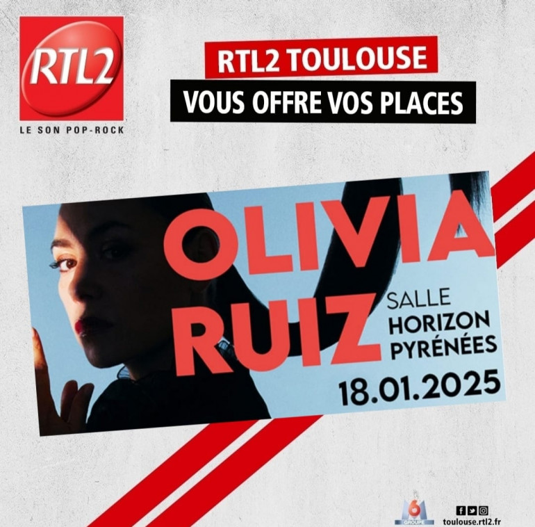 Cette semaine écoutez RTL2 Toulouse entre 12h et 16h et venez assister au concert d'Olivia Ruiz "La Réplique" le samedi 18 janvier à la salle Horizon-Pyrénées de Muret à 20h30