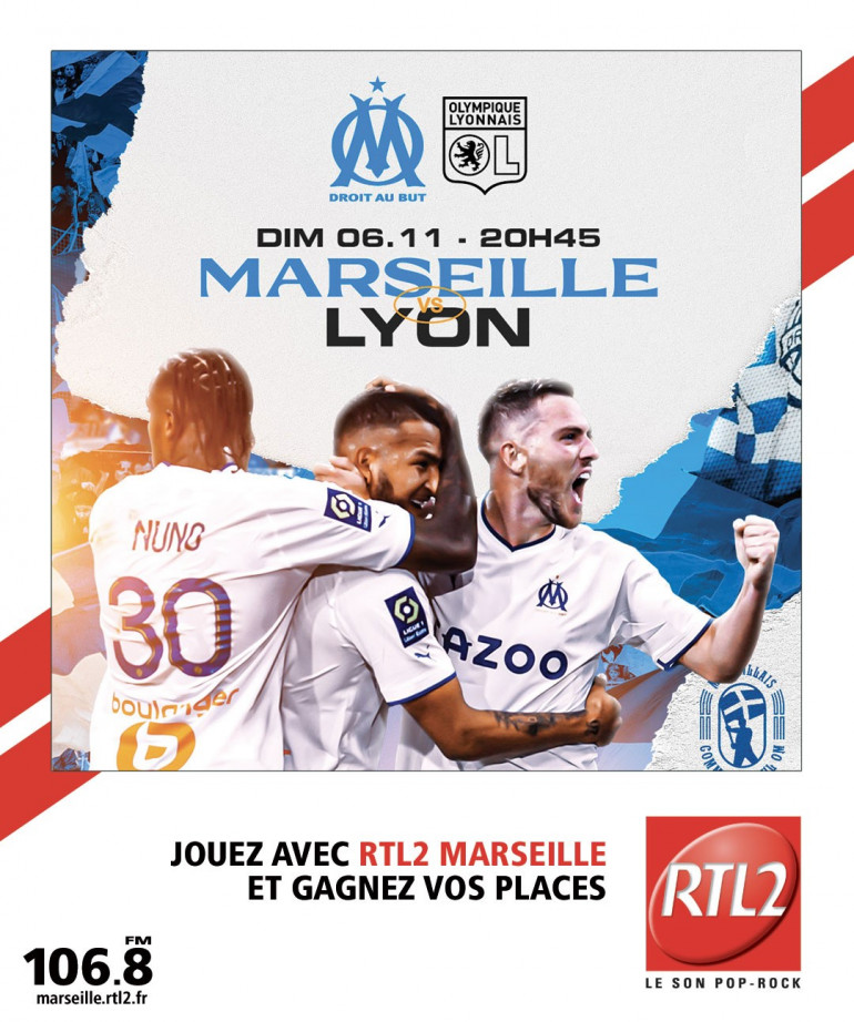 RTL2 Marseille vous invite au prochain match de l'Olympique de Marseille en Ligue 1 Uber Eats : OM / OL, ce dimanche 6 novembre à 20h45 à l'Orange Vélodrome !