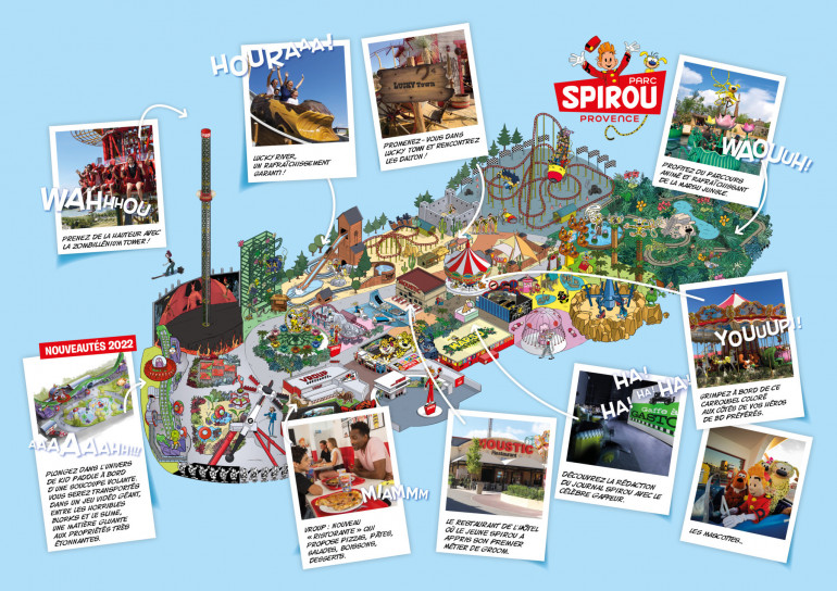 Depuis son inauguration, en juin 2018, le Parc Spirou Provence a accueilli plus d’un million de visiteurs. C’est le premier parc familial d’attractions dans un univers 100 % bande dessinée de Provence Alpes Côte d’Azur. Le Parc Spirou propose à toutes les familles une expérience immersive, chaleureuse et émotionnelle avec des attractions pour tous les âges qui réunissent les personnages emblématiques des Éditions Dupuis. Spirou, Gaston Lagaffe, Lucky Luke, Marsupilami, Boule et Bill, mais également les nouveaux héros comme Petit Poilu ou l’univers de Game Over donnent vie au parc. Un casting inédit, unique, très identifié et plébiscité depuis des décennies par toutes les générations.