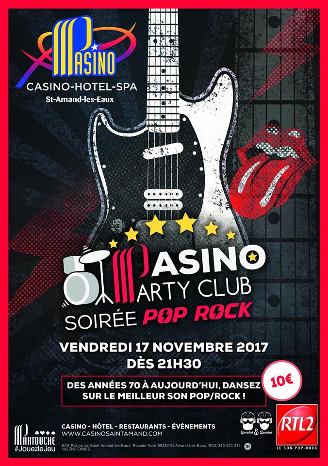 La soirée Pasino Party-Club 100% Pop-Rock, c'est le 17 novembre, au Pasino de Saint-Amand-les-Eaux, avec RTL2, le son Pop-Rock !