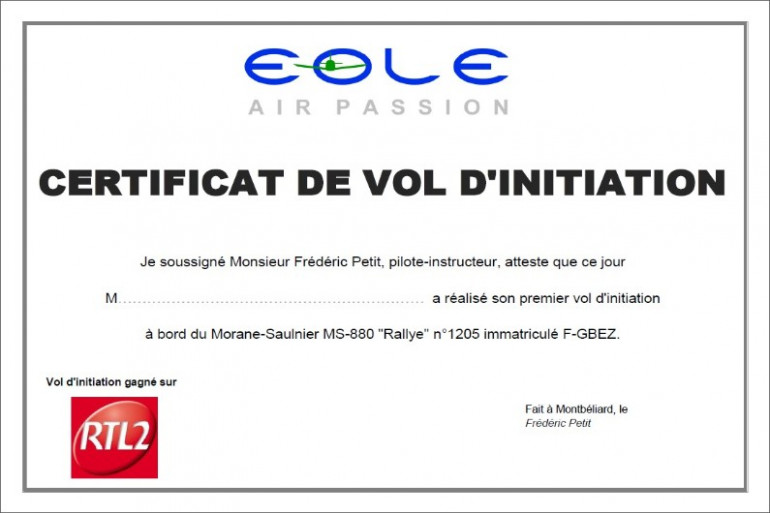 Certificat de vol avec Eole Air Passion